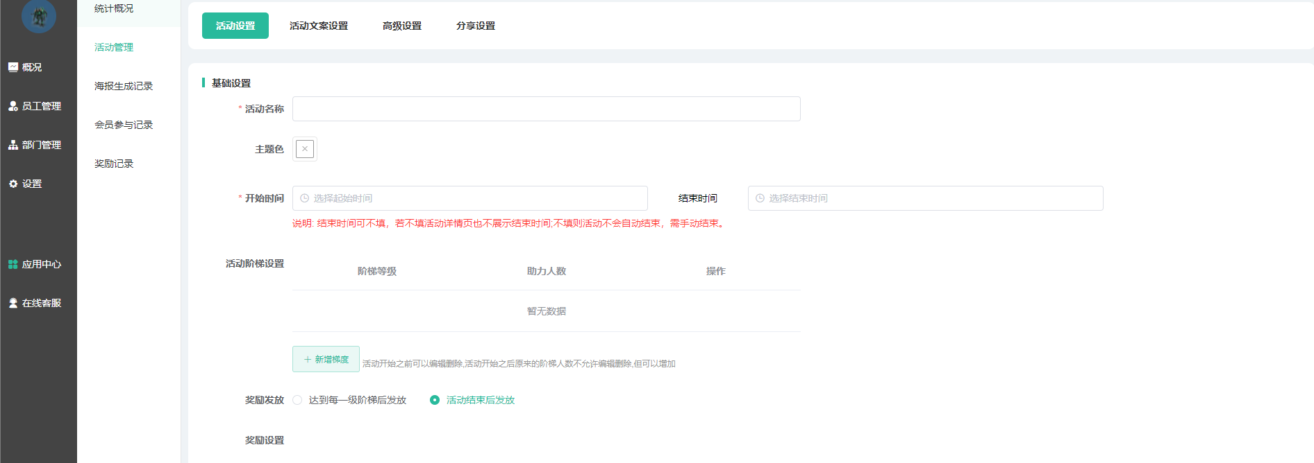 • 活动阶梯设置:支持设计多个奖励阶梯、不同的阶梯达标后给予不同的奖励;