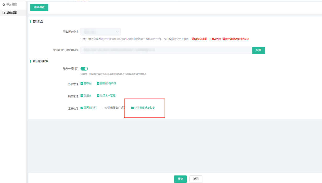 企业平台管理增加勾选好友裂变权限