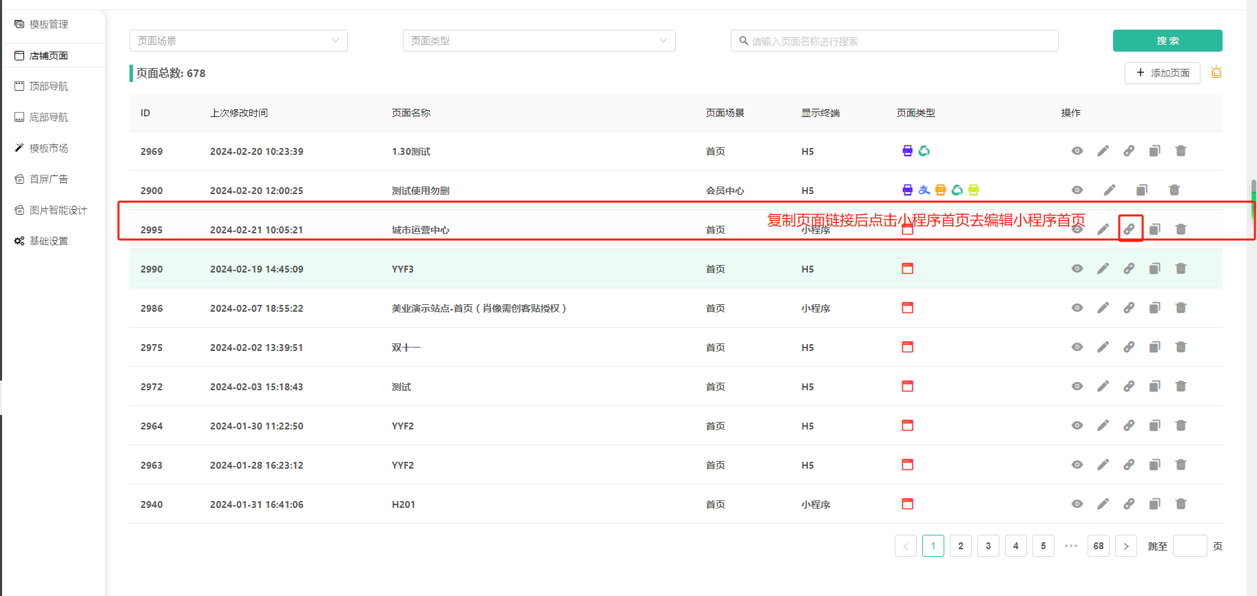 复制页面链接后点击小程序首页去编辑小程序首页