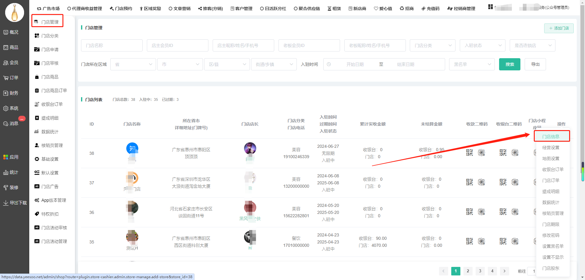 连锁门店的老板,手机端管理店铺和查看提成信息通过在后台门店列表—操作编辑,自行添加连锁店老板